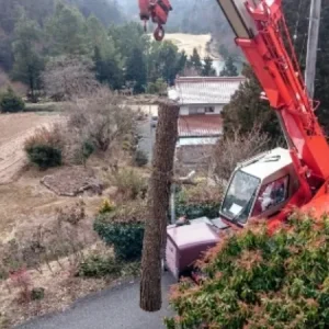 クレーン車やロープを使った特殊伐採には近年林業会社や森林組合だけでなく、造園会社や個人による参入も目立っております。