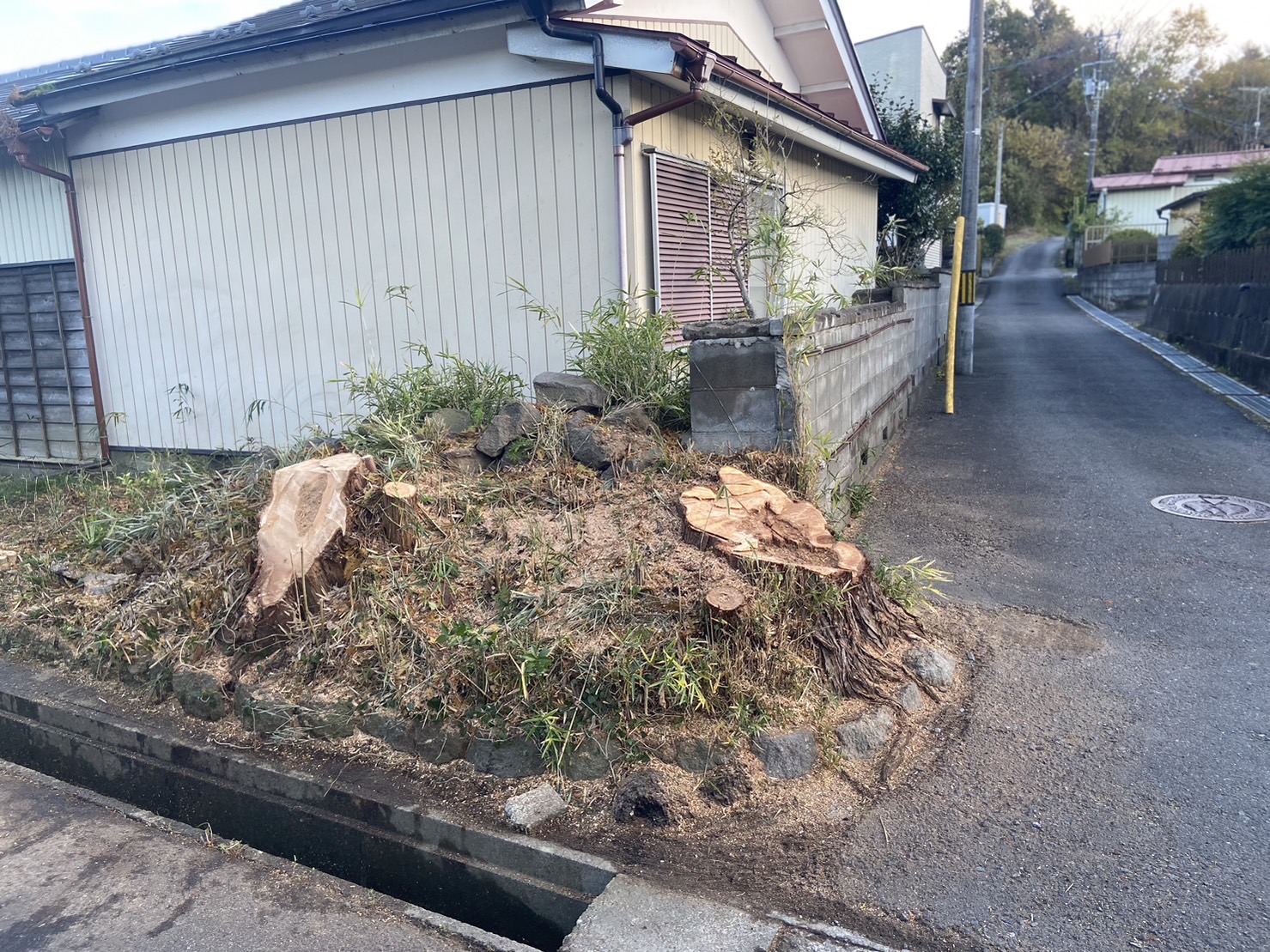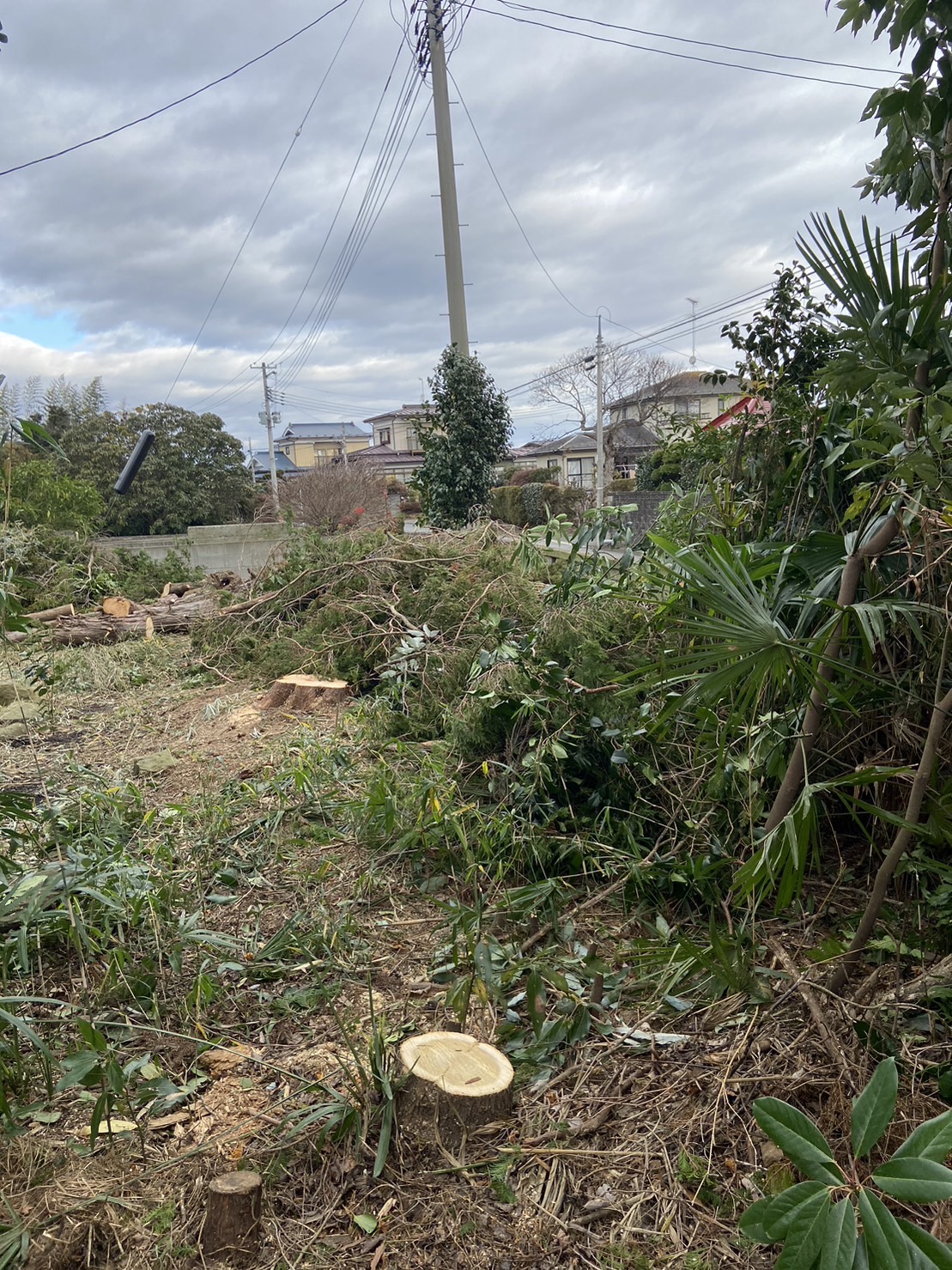 伐採後は幹や枝葉をきれいに片付け、敷地全体を清掃して完了。